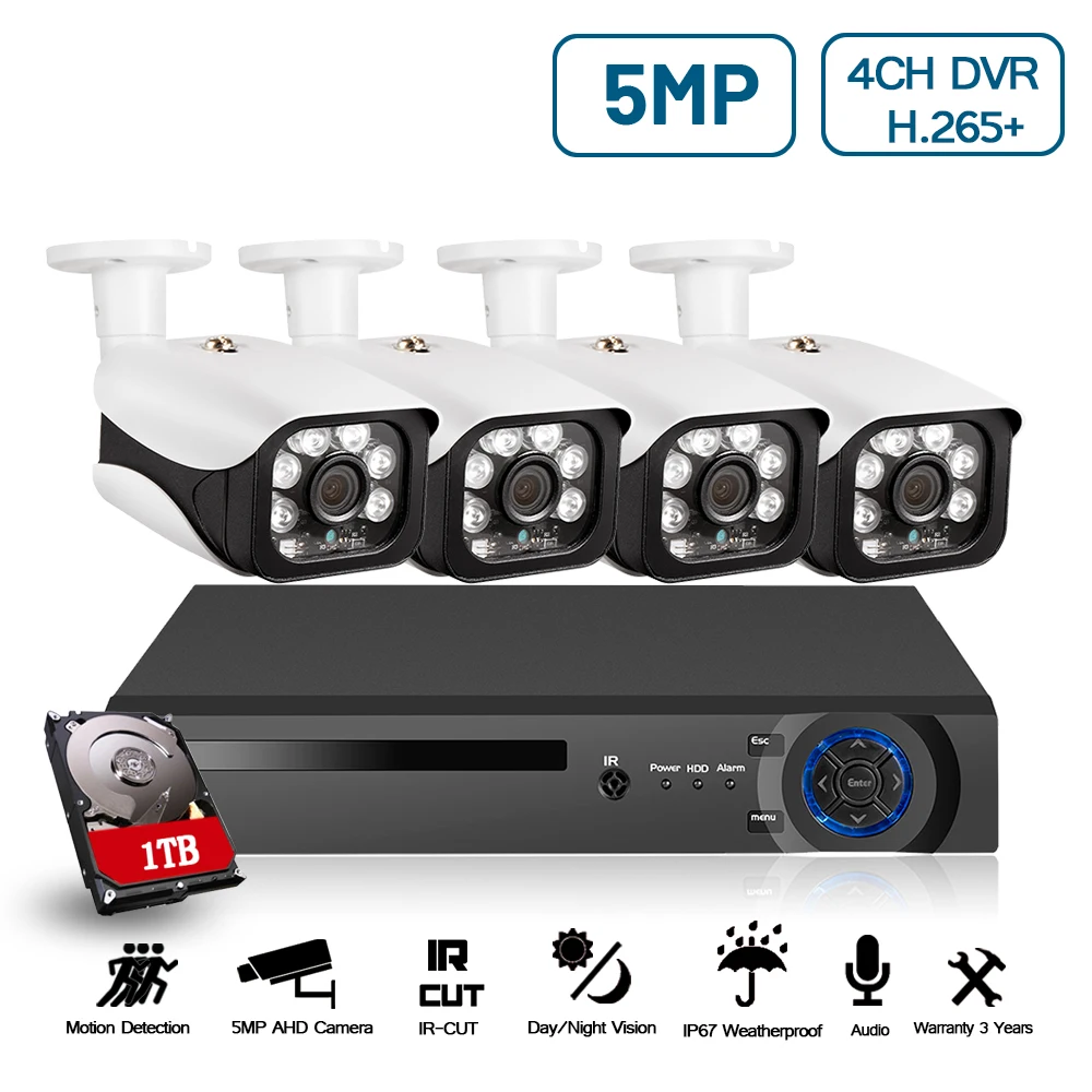 5mp HD CCTV System 4CH AHD DVR 4PCS 5.0mp Security Camera indoor Video Surveillance System Easy Rem