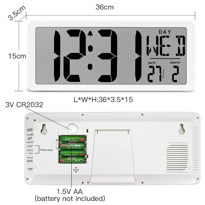 BEST QUALITY TXL Extra Large Vision Digital Wall Clock Jumbo Alarm Clock 13.8" LCD Display Alarm Calendar Indoor
