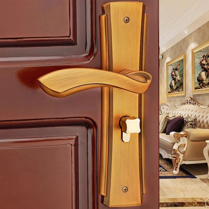 ORIGINAL Indoor solid wood door locks bedroom mechanical antique handle bronze door locks