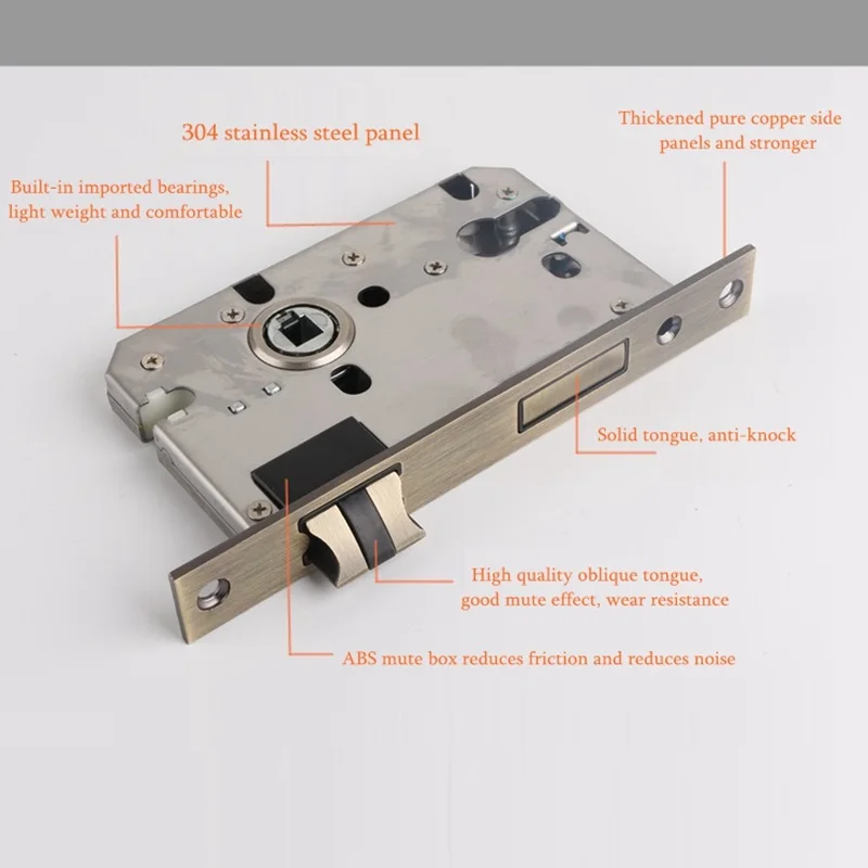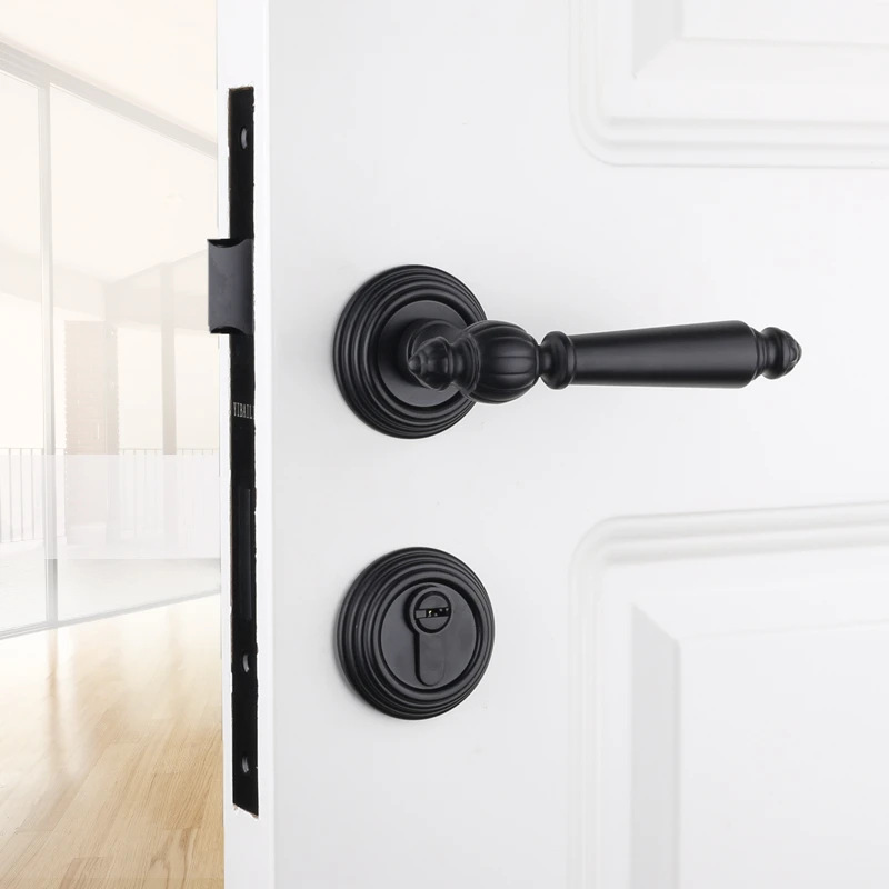 Luxury Modern European Fashion Golden Black Indoor Mute Copper Interior Door Lock Bedroom Room Mute