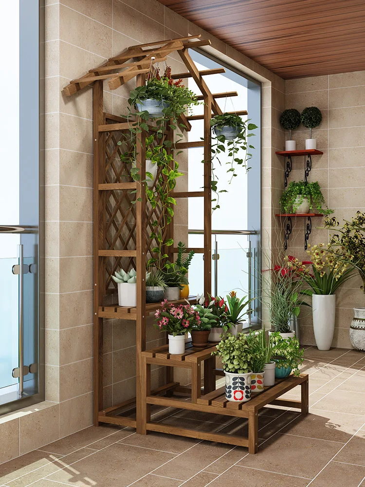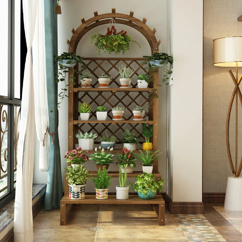 Anti-corrosion Wooden Flower Stand Solid Wood Multi-layer Flower Shelf Indoor Living Room Pot Rack
