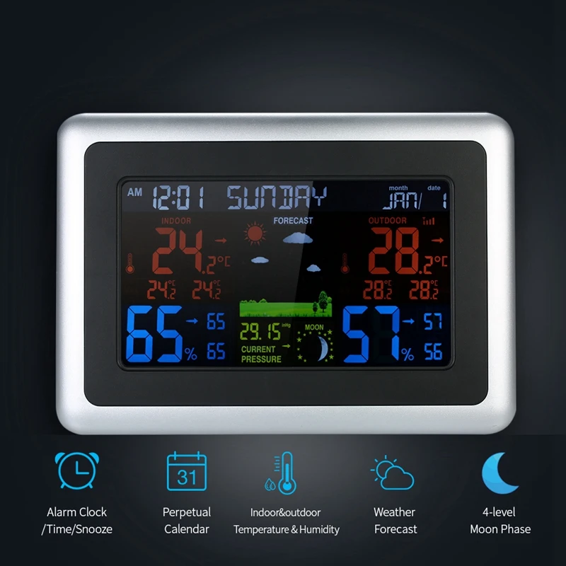 Wireless Weather Station LCD Weather Forecast Indoor Outdoor Thermometer Hygrometer with Backlight